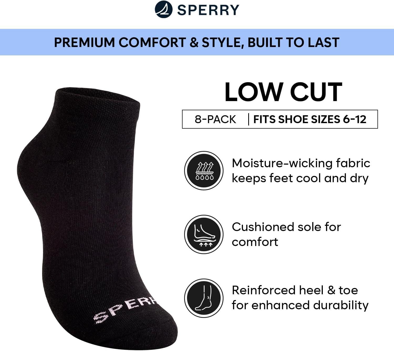Sperry Men’s Cushioned No Show Socks 8-Pack – Moisture-Wicking, Non-Slip Fit, Low Cut Ankle Socks for Everyday Wear(Black)
