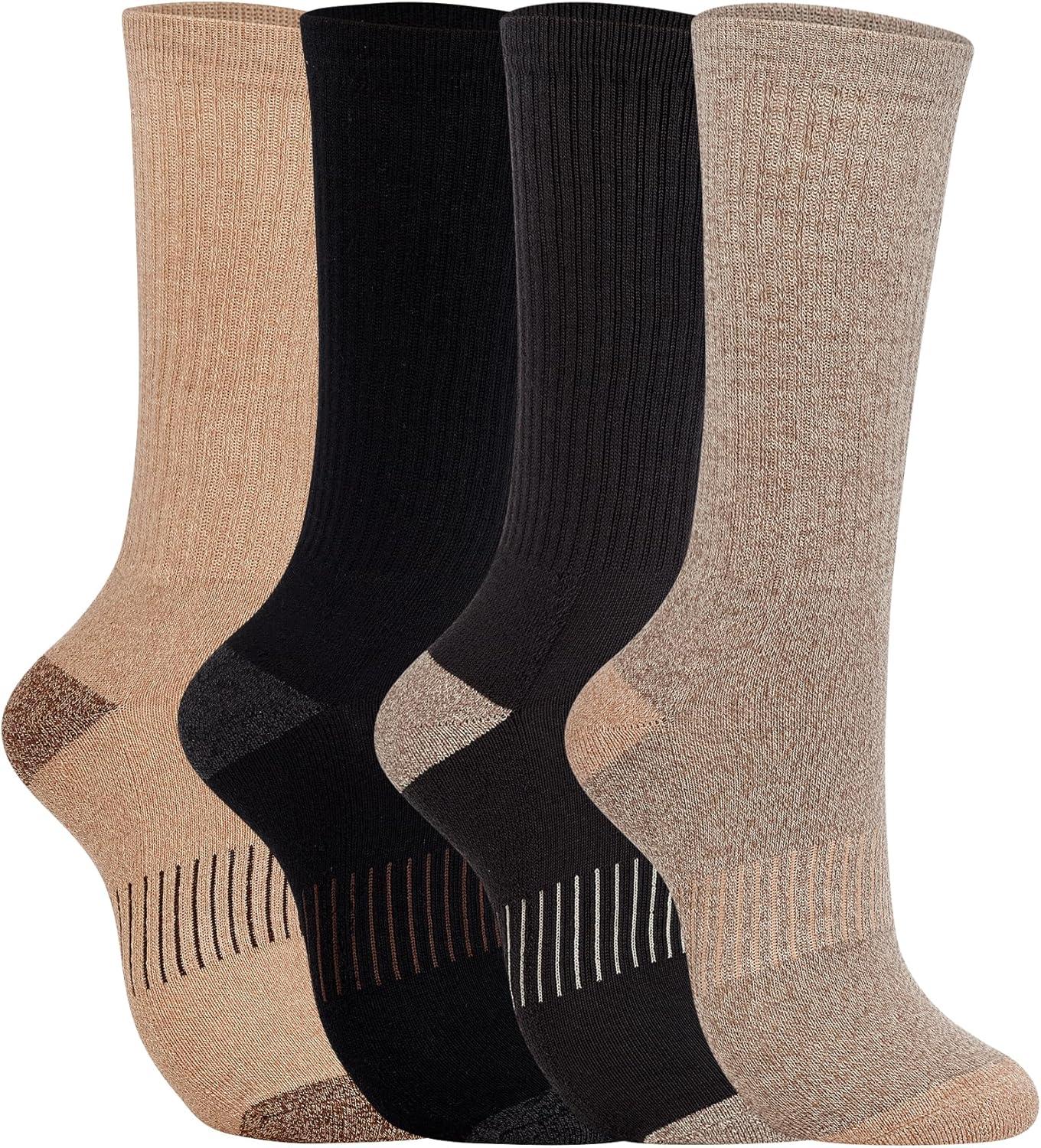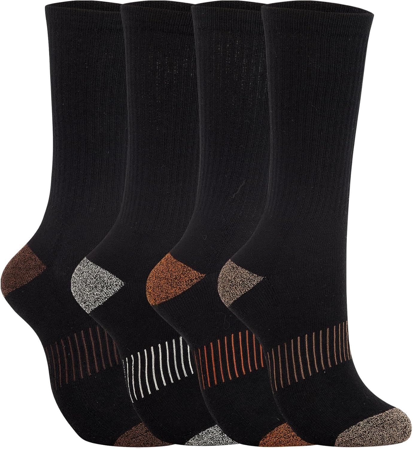 Sperry Mens Work Socks, 4-Pack Half Cushioned Crew – Soft Cotton Moisture-Wicking Boot Socks with Reinforced Heel and Toe(Brown Multi)