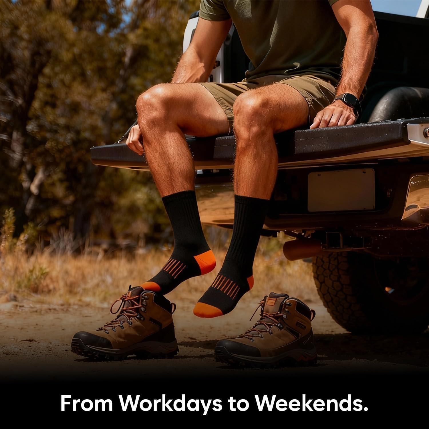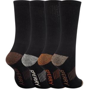 Sperry Mens Work Socks, 4-Pack Half Cushioned Crew – Soft Cotton Moisture-Wicking Boot Socks with Reinforced Heel and Toe(Black Multi)