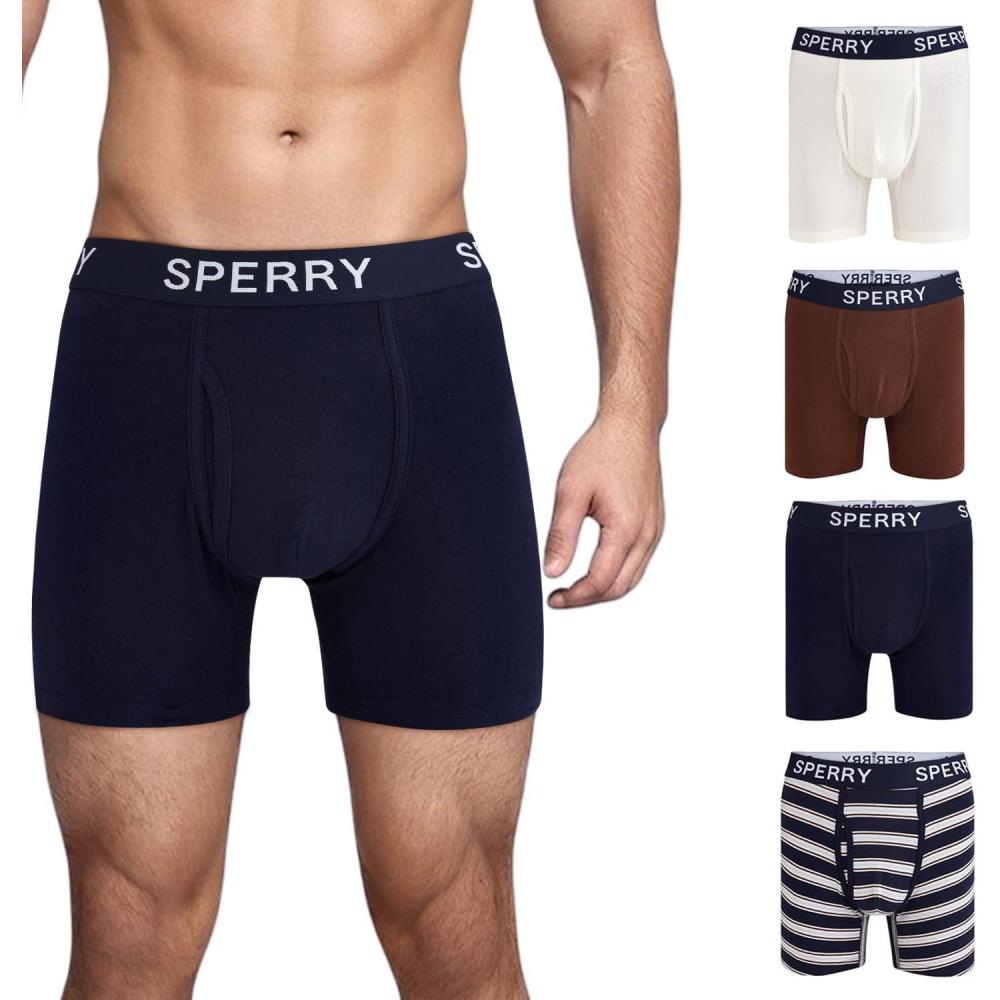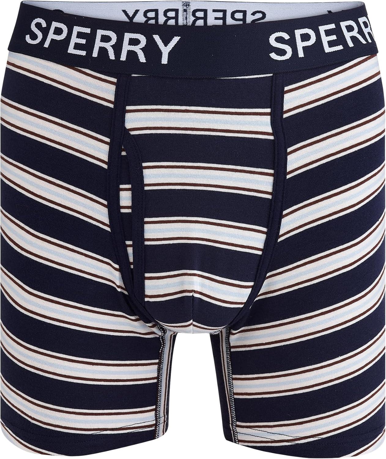 Sperry 4-Pack Mens Premium Cotton Stretch Boxer Briefs – Everyday Comfort Cotton Mens Boxer Briefs with Fly Pouch & 5” Inseam(Blue Multi)