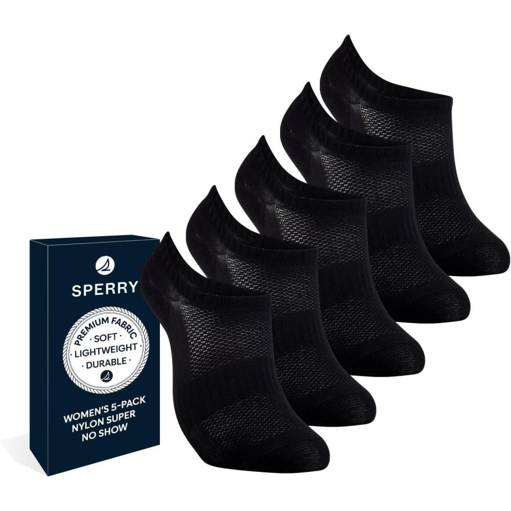 Sperry Women’s 5-Pack Super No Show Socks – Breathable Mesh, Lightweight, Non-Slip Invisible Low Cut Liner Socks for Sneakers(Black)