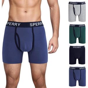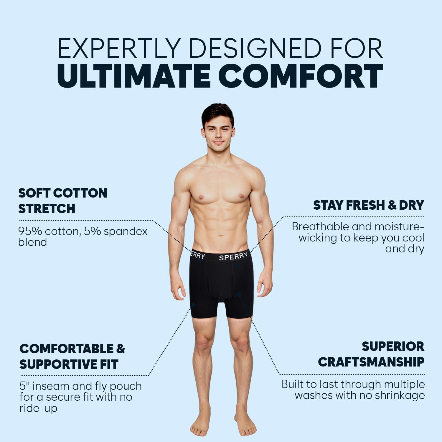 Sperry 4-Pack Mens Premium Cotton Stretch Boxer Briefs – Everyday Comfort Cotton Mens Boxer Briefs with Fly Pouch & 5” Inseam(Navy Multi)