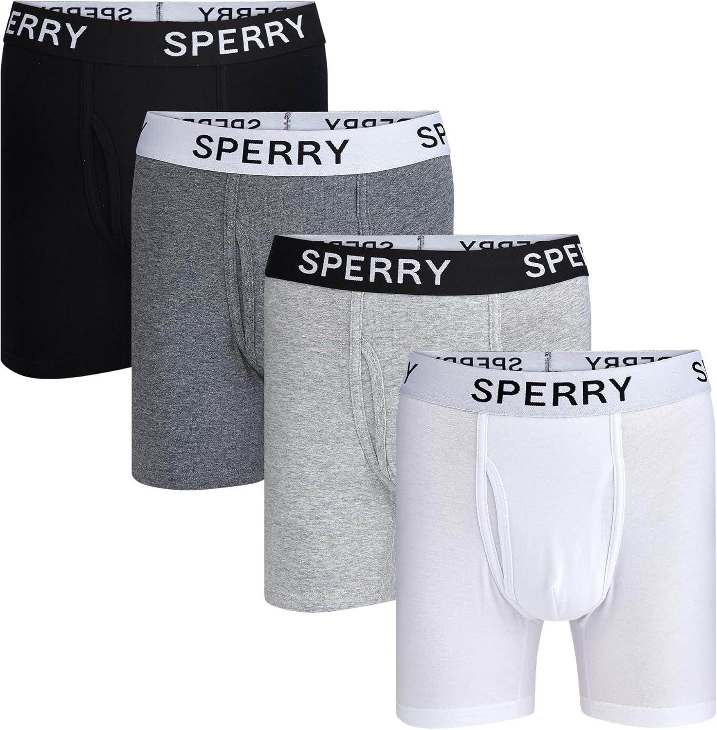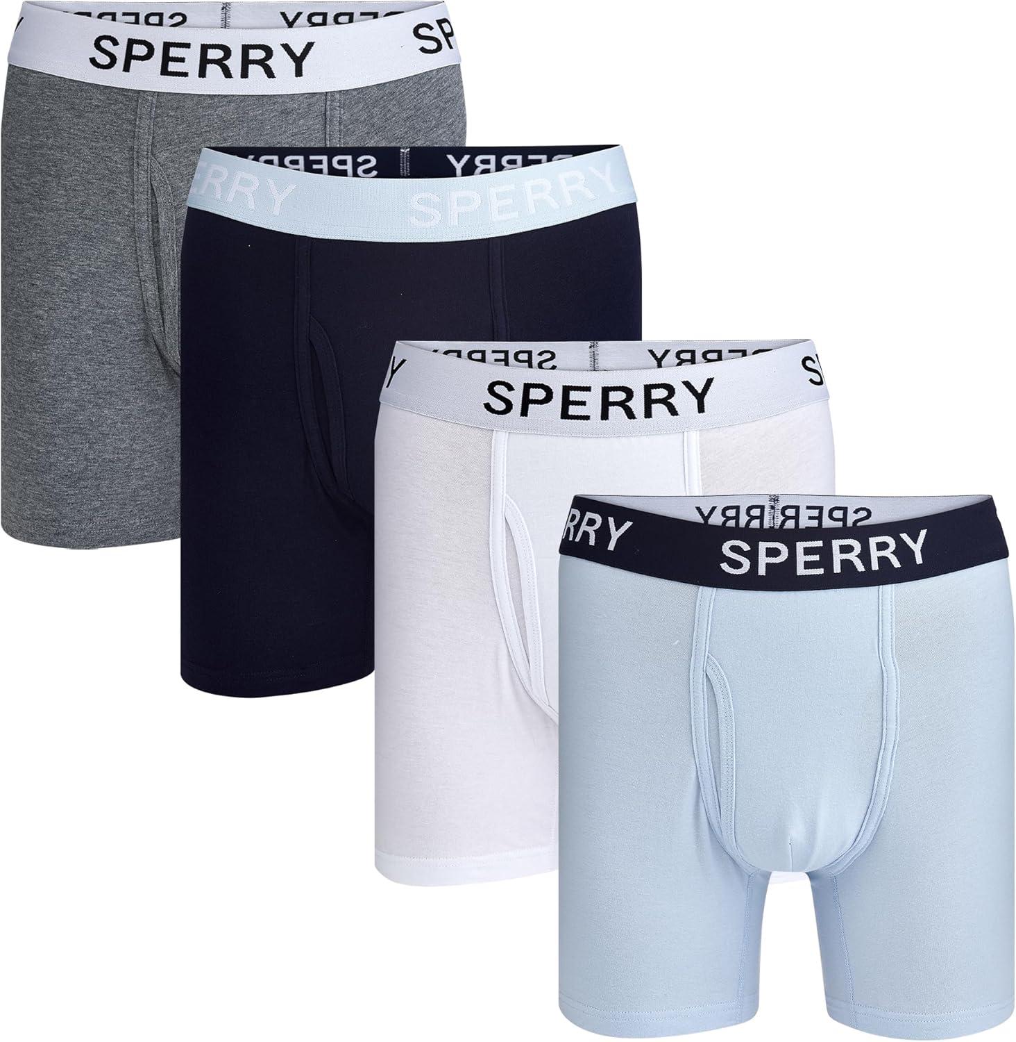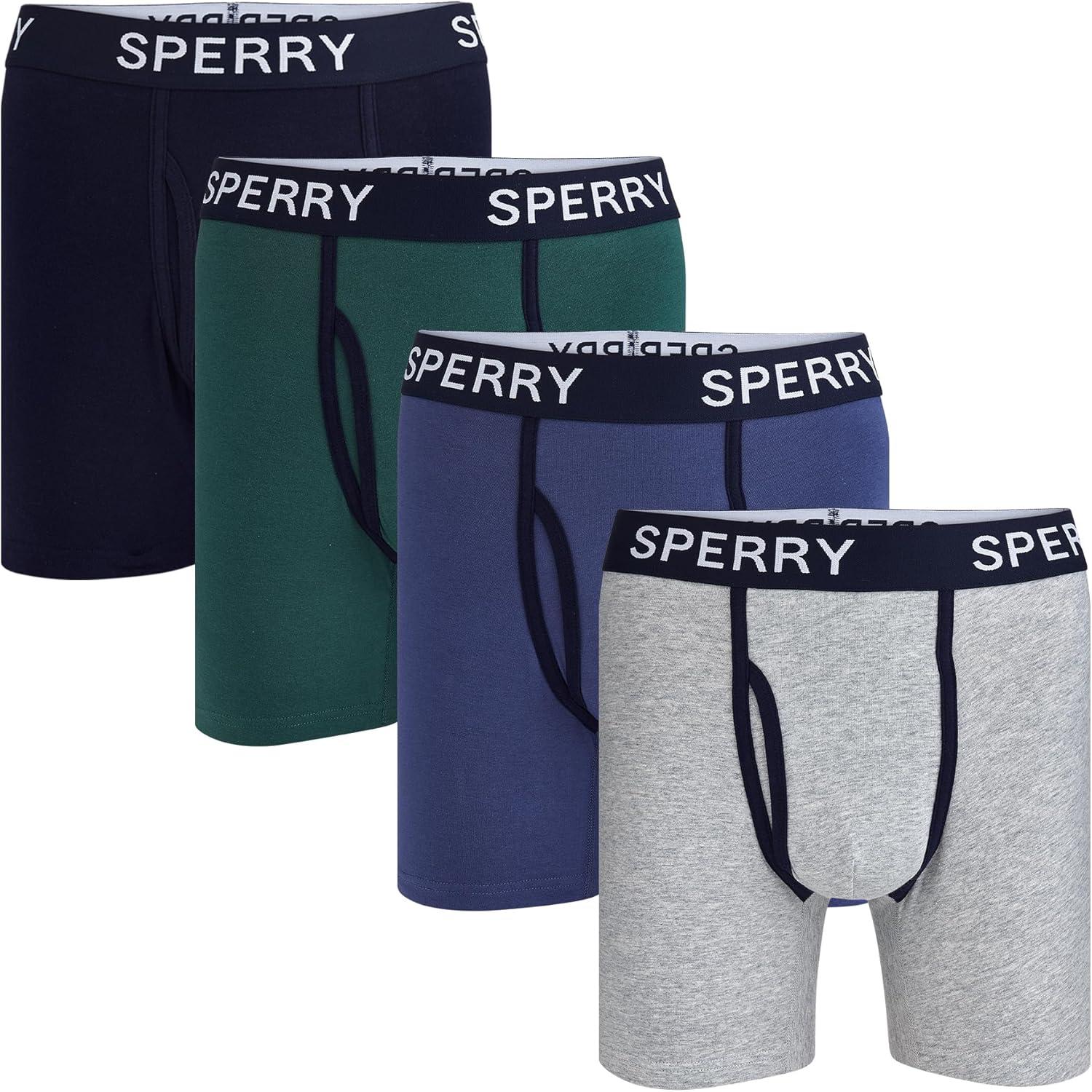 Sperry 4-Pack Mens Premium Cotton Stretch Boxer Briefs – Everyday Comfort Cotton Mens Boxer Briefs with Fly Pouch & 5” Inseam(Multi)